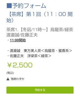(1)予約したい茶席の「予約する」ボタンを押してください。