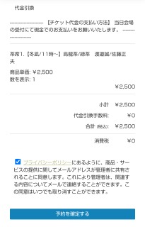 (4)予約内容に間違いがなければ、プライバシーポリシーに同意する旨チェックをしていただき青地に白のチェックマークがついたことを確認して、「予約を確定する」ボタンを押してください。